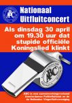 Dat Comité Inhuldiging heeft 'begrip' voor Ewbanks besluit, maar die meezingellende in Ahoy op 30 april gaat gewoon door. Het aangekondigde Nationaal Uitfluitconcert ook! Iedereen die op zijn vingers kan fluiten of een scheidsrechters/politiefluithe heeft, wordt opgeroepen zodra dat lied van het Comité Inhuldiging wordt ingezet, mee te fluiten.
